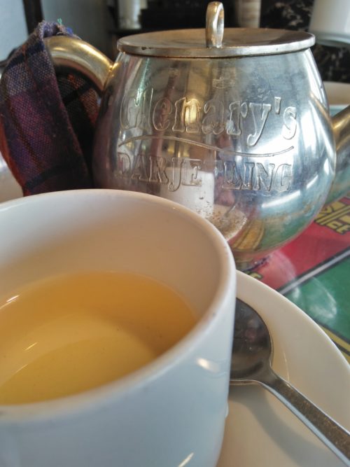 Then back to Glenarys for cups of fragrant Darjeeling chai and my favorite blueberry cheesecake. Get one more packed and head for the car pick up stand. At the hotel some more chai and then dinner.